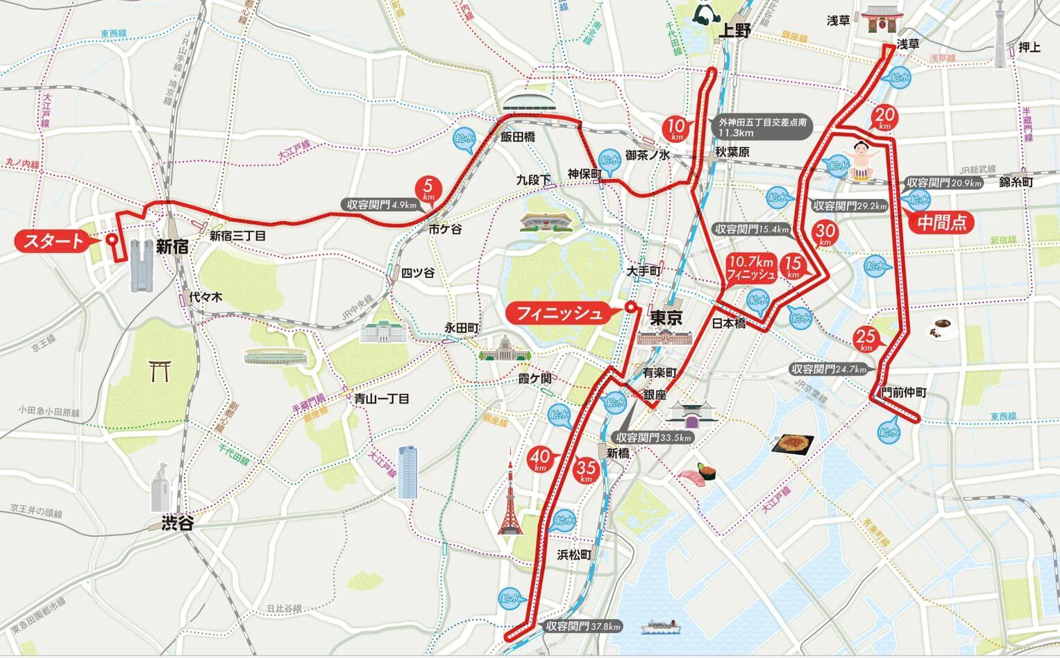18km過ぎに浅草寺の前を通ります。ALL Sportsのカメラマンも控える場所ですが、ここは外国人の多くが自ら写真を撮っています。そんなランナーたちと接触しないように気を付けながら浅草寺前を通過しました。